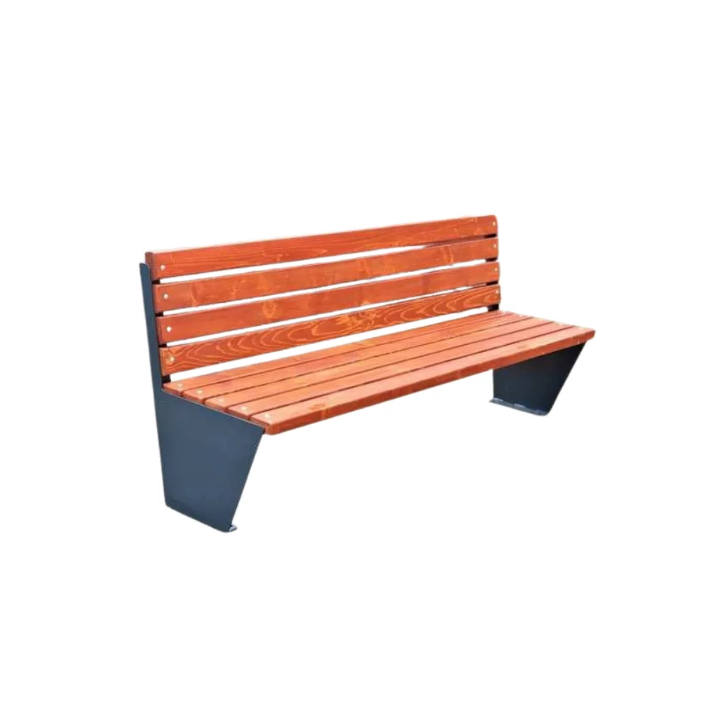 Construcția lateralelor din tablă de 5 mm grosime oferă stabilitate superioară și durabilitate pe termen lung, chiar și în condiții de trafic intens sau expunere la factori climatici. Șezutul este realizat din 8 elemente din lemn de brad, finisate pentru confort și integrare estetică în orice tip de amenajare urbană.