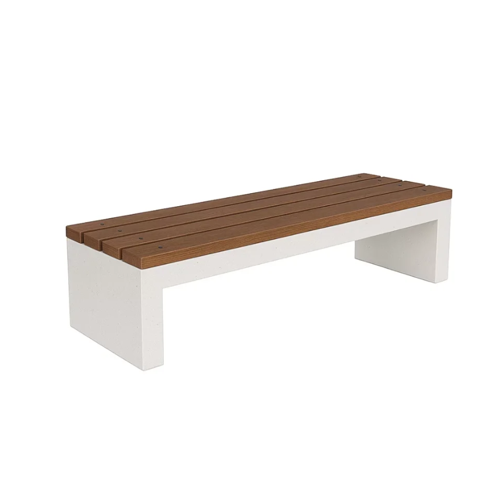 Bancă stradală din beton cu aspect de marmură albă și șezut din stejar Model 17